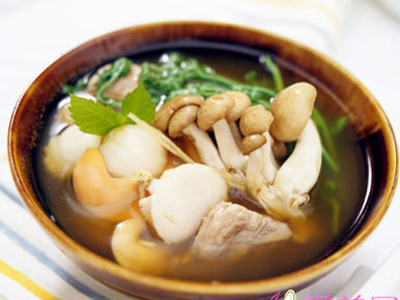 2、蘑菇洗净切两瓣,先炖猪肚,加精盐少许,待八成熟,再入蘑菇煮熟即成。