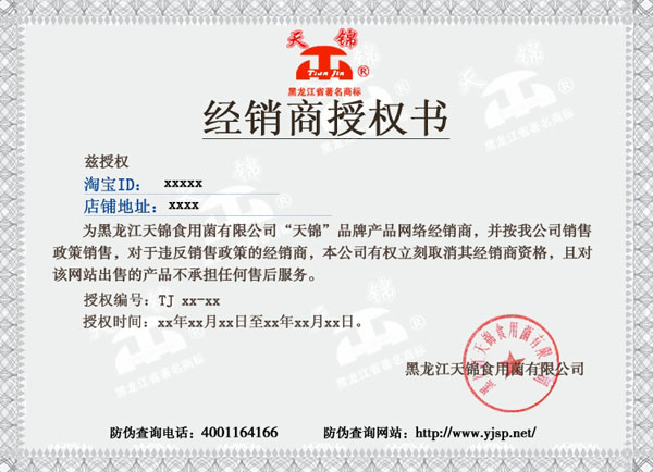 注:只有这个版本的授权书才为天锦公司有效的授权凭证,其余样式的一律不被认可!