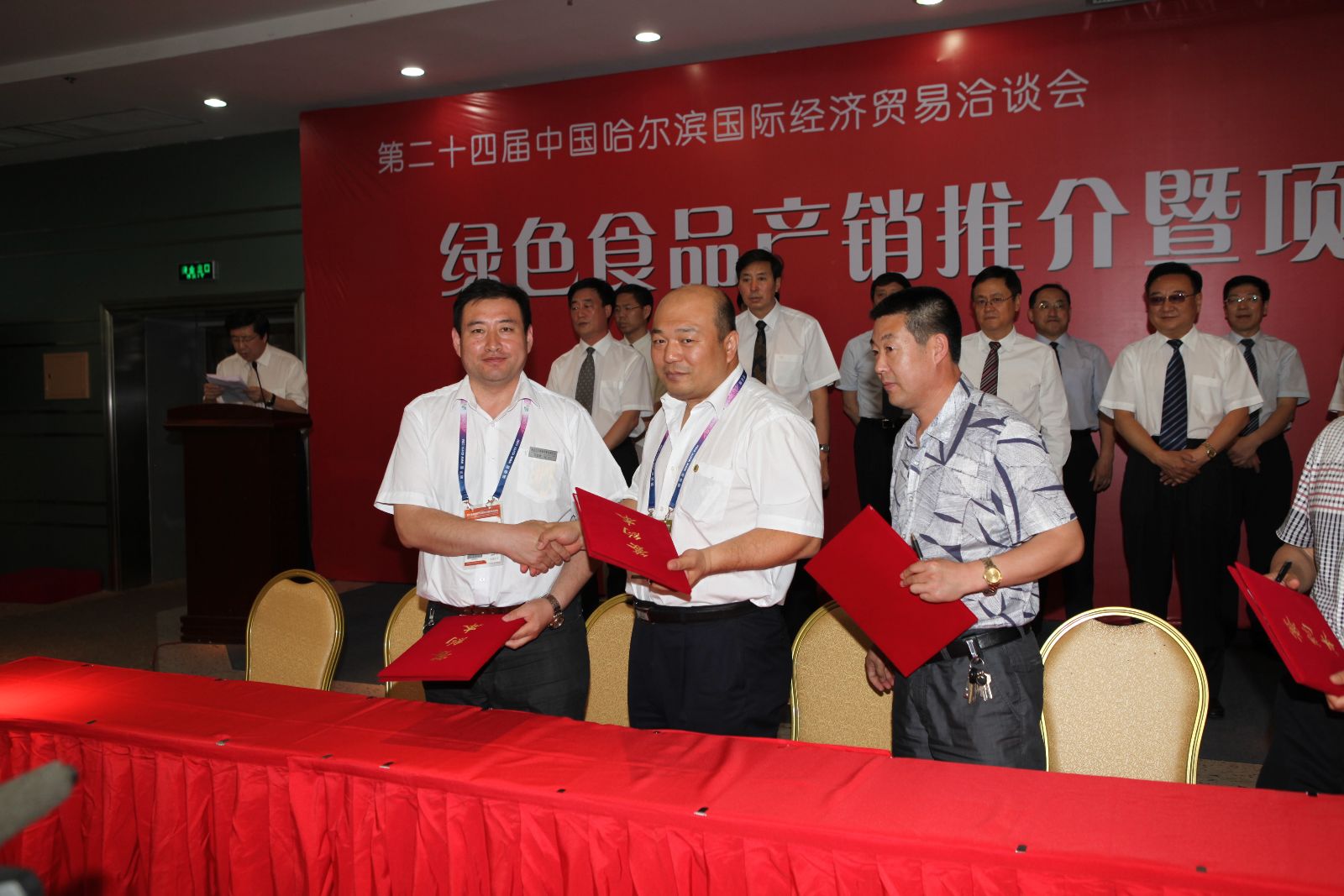 高鹏总经理在第二十四届哈洽会上上台签约,天锦公司是唯一一家上台签约的食用菌企业。