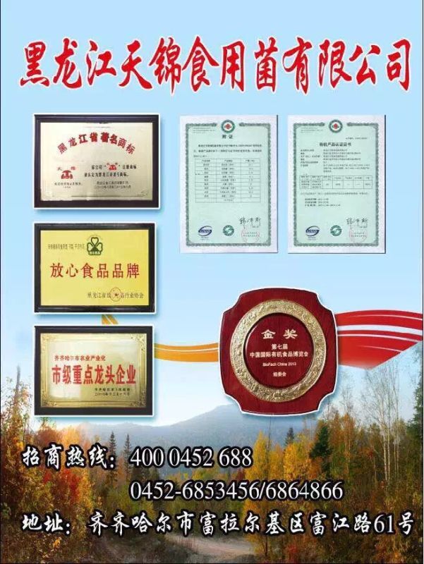 由中国贸促会、广州市政府主办,广州市贸促会承办的的第四届中国广州国际食品食材展览会将于2015年6月11至14日在广州琶洲保利世贸博览中心举行。作为中国有机营养倡导者的黑龙江天锦食用菌有限公司作为黑龙江省代表企业受邀参加此次展览会,天锦有机食用菌产品将在国际友人面前精彩亮相!各界大型、知名企业的加入,将为天锦公司寻求OEM及ODM合作打开广阔的市场。届时天锦公司将以更为优质的产品,更为卓越的服务回馈广大消费者。