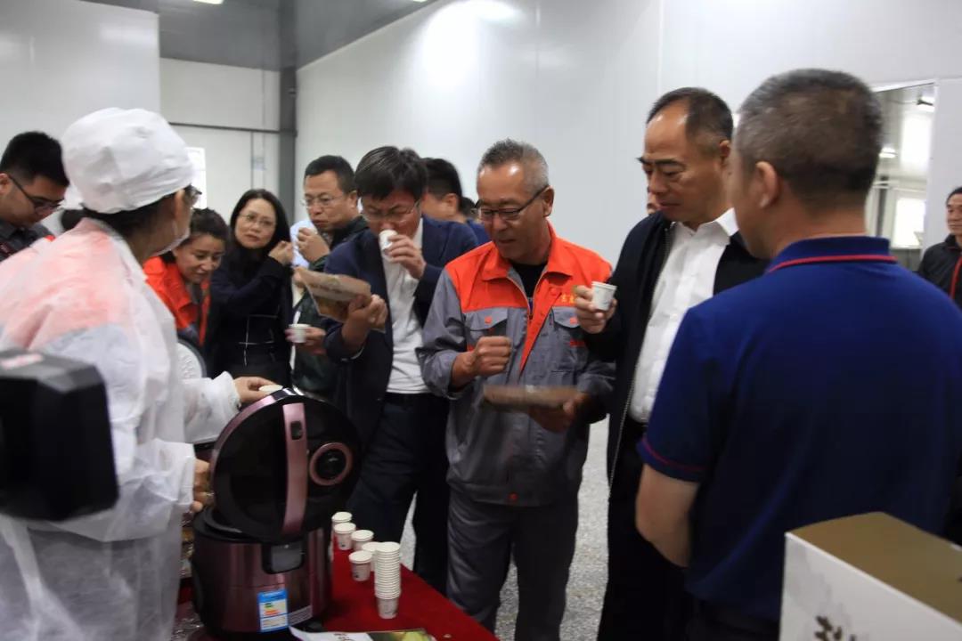 随后,领导们现场饶有兴致的品尝了菌汤,对我们的深加工产品速食菌汤给予高度赞扬。