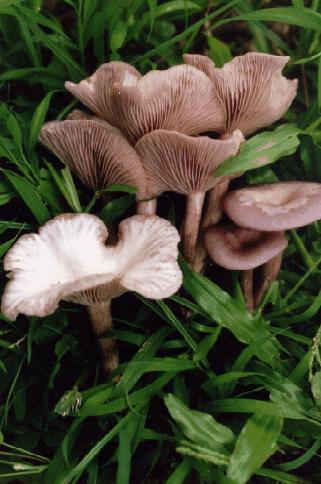 形态特征一般子实体较小。菌盖直径3-7.5cm,扁半球形至平展,有时中 部稍下凹,薄,湿润时半透明状或水浸状,紫色,边缘内卷,具不明显的条纹,常呈波状或瓣状。菌肉带淡紫色,薄。菌褶淡蓝紫色,稍稀,直生或弯生,有时稍延生,不等长。菌柄长3-6.5cm,粗0.2-1cm,同菌盖色,靠近基部常弯曲,内实。孢子印带粉红色。孢子无色,具麻点至粗糙,椭圆形至近卵圆形,6.2-9.8×3.2-5μm。